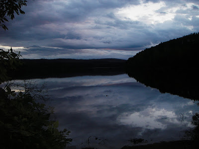 A bit further north along the Granite River and we come to our first major portage. The Pine Portage, as it’s called, is a 110 rod carry along a trail that first climbs to the island’s high point and then descends down a long, steep drop to Clove Lake. Once on Clove Lake, we make our first night’s camp. We unload our gear, set up the tents, and prepare the bear hang (you gotta hang your food from a tree out here to make sure the bears don’t get at it). The sun goes down behind the thick cloud cover, giving us barely a glimpse of a sunset.